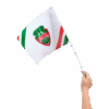 Les drapeaux de supporters sont imprimés en quadrichromie sur du papier solide et sont fournis avec un bâton en PVC. Les drapeaux imprimés sont regroupés par 50 pièces environ, puis mis dans une boîte par 1000.