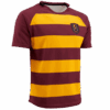 Les maillots de rugby sont fabriqués à partir d’un tissu interlock, plus épais et plus résistant que le tissu utilisé pour les maillots de football, par exemple. Le tissu est spécialement conçu pour les maillots de rugby.