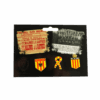 Le dessin apparaît à l’avant, une balle ou une raquette apparaît en relief à l’arrière, taillée dans le métal.