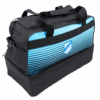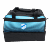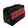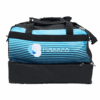 Le sac contient un compartiment à chaussures fermé en bas. Le sac contient à la fois une bandoulière et 2 poignées. Ces derniers peuvent être attachés les uns aux autres grâce à une fermeture velcro. Au fond du sac 5 crampons sont fixés afin qu’il reste bien droit sur le sol.