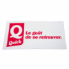 Chaque serviette est fabriquée sur mesure et peut être personnalisée avec des logos, des textes ou tout autre élément graphique. Besoin d’aide pour créer un design ou vous avez déjà un visuel ? Envoyez-le-nous pour approbation, et nous nous occupons du reste.