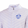 L’intérieur de la veste est toujours blanc, avec un col dans la couleur que vous souhaitez. La taille est indiquée sur le col (téléchargez le guide des tailles ici). Vous pouvez choisir entre une fermeture éclair courte sur environ un quart de la veste ou une fermeture éclair avec laquelle la veste peut être ouverte complètement. La veste avec une fermeture éclaire complète, contient des poches avec une fermeture éclair des deux côtés.